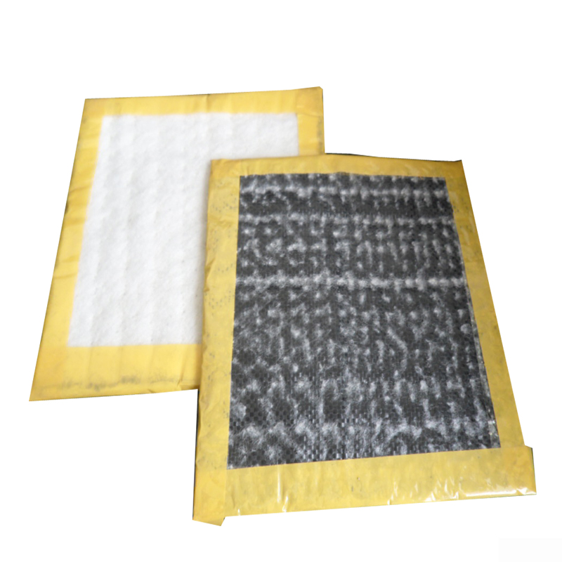 鋪設(shè)水平方向的膨潤土毯,并在施工縫位置將膨潤土毯多預(yù)留60cm長度,將多出來的部分彎折成雙層膨潤土毯進行保護,并在收頭位置撒布膨潤土粉。在施工縫位置支設(shè)模板,止水帶設(shè)置在底板板厚的1/2處并固定牢固,止水帶下方放置U形膨潤土毯并固定在模板上。在這些完成之后,澆筑一側(cè)的混凝土。
